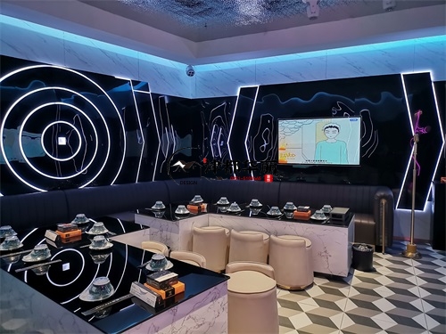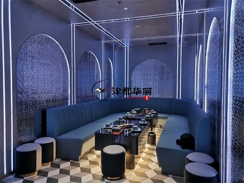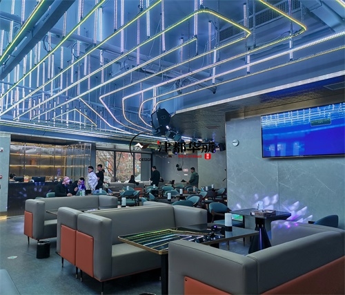 今天分享的是宁夏鼎龙餐厅设计装修项目实景鉴赏,该项目以“未来感与时尚感深度融合”为设计核心,致力于打造一个兼具餐饮与娱乐功能的沉浸式空间。在视觉设计上,空间大量运用霓虹光源与几何元素,例如墙面环绕的环形灯带、立体几何装饰结构,并以高对比度的黑白主色调为基底,成功营造出极具赛博朋克风格的前卫氛围,精准匹配年轻消费群体对潮流社交空间的需求。功能布局上,该餐厅巧妙融合KTV包厢的休闲属性与传统餐厅的用餐功能,采用卡座与餐桌一体化的设计方案,在保障用餐便捷性的同时,充分满足消费者的社交娱乐需求。银川装修公司津都华丽团队在本次项目中,深度践行潮流沉浸式餐饮空间的设计理念。