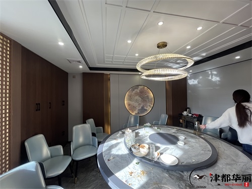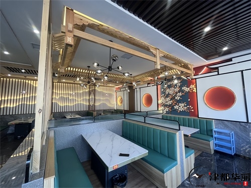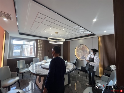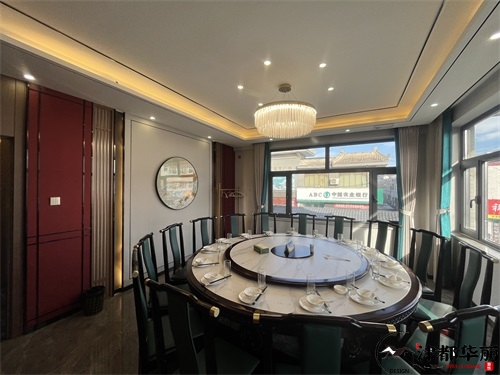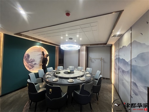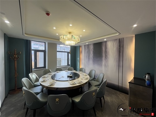 今天分享的是宁夏金龙回坊火锅店装修设计实景,这家火锅店装修设计风格以新中式国潮风为核心,既保留了传统餐饮空间的雅致底蕴,又通过现代手法注入年轻活力,精准契合了当下火锅店装修设计中“文化赋能+体验升级”的趋势。从包间区域来看,火锅店装修设计的“轻奢质感”被巧妙落地:墙面采用木纹饰面板搭配金色叶片装饰,既借由木质元素传递中式空间的温润,又以金属细节提升宴请场景的精致感;圆形餐桌搭配带有新中式线条的软包座椅,浅白与墨绿的配色既呼应了传统美学的雅致,又通过软包材质保证了用餐的舒适感;顶部的圆形吊顶+水晶吊灯组合,既以“天圆地方”的传统意象强化空间仪式感,又用灯光的暖调氛围消解了商务包间的冷硬。