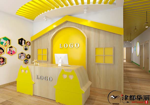 越来越多的家长注重孩子的口才教育,一副好口才可以让孩子有更好的人际关系,练就好口才对于孩子的成长的作用是很大的...口才素养及综合素质,促进我国儿童少年身心健康成长,今天分享的案例是一家口才教育中心设计。设计线条流畅,色彩靓丽。体现出孩子伶俐的口齿,黄色作为主色调,象征着孩子多彩人生以及多才的世界,代表着对学员的美好希冀。受众以孩子居多,所以在整体色系风格上我们选用了以黄色为主,外加辅助图形作为vi系统延展设计,整体营造一种活力的感觉,给孩子们打造一个充满希望的世界,宽敞明亮的教室设计使用明亮的黄色搭配绿色作为点缀,富有时尚感与感,绿色象征着冷静和睿智,黄色象征着热情和希望。背景墙以具象化展开的灯带,精致的造型搭配通透明亮的灯光设计,美感与实用兼备。在语言表达上,既要注重思维的逻辑性,又要增强语言的感染力,让孩子更有主见,更有思想。前台吊顶做环形凹陷处理,极大的增加空间感与明亮度,原木地面且耐脏,以现代简约为基调,打造精致高端的校区环境。